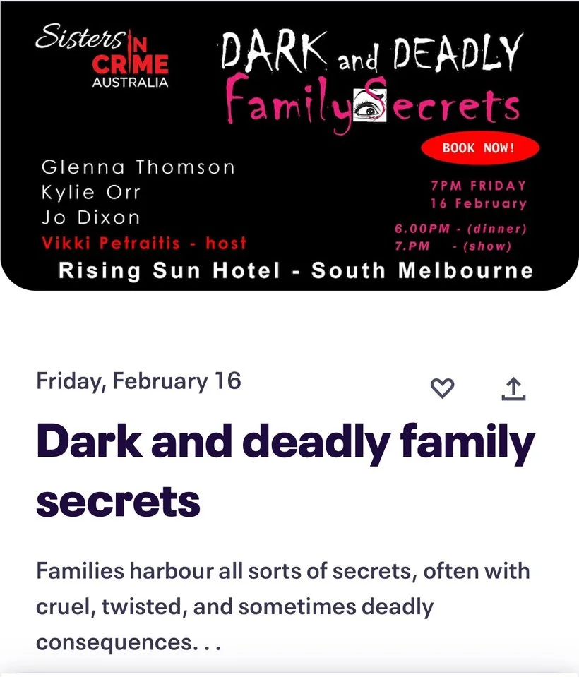 Back to All Events Sisters in Crime Friday 16 February 2024 7:30 pm 10:00 pm Kylie Orr 2 Raglan Street South Melbourne, VIC, 3205 Australia (map) Google Calendar ICS BOOK HERE